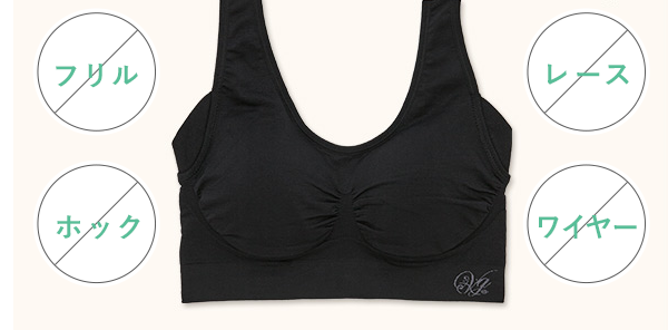 フリル、ホック、レース、ワイヤーがないシンプルな構造だから就寝時も楽。